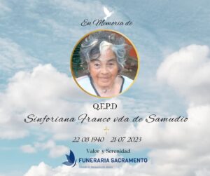 Sinforiana Franco vda de Samudio Born in on 22 de Agosto de 1940 Passed away in on 21 de Julio de 2023